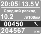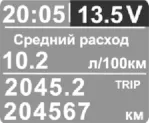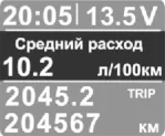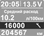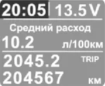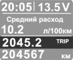 | 4 | Режим показаний среднего расхода топлива, л/100 км (от 0.0 до 19.9) | ![]() |