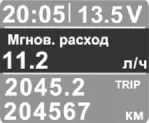 | 3 | Режим показаний мгновенного расхода топлива, л/ч (от 0.0 до 19.9) | ![]() |