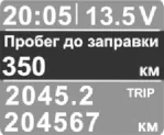 | 7 | Режим показаний пробега до заправки, км (от 30 до 999) | ![]() |